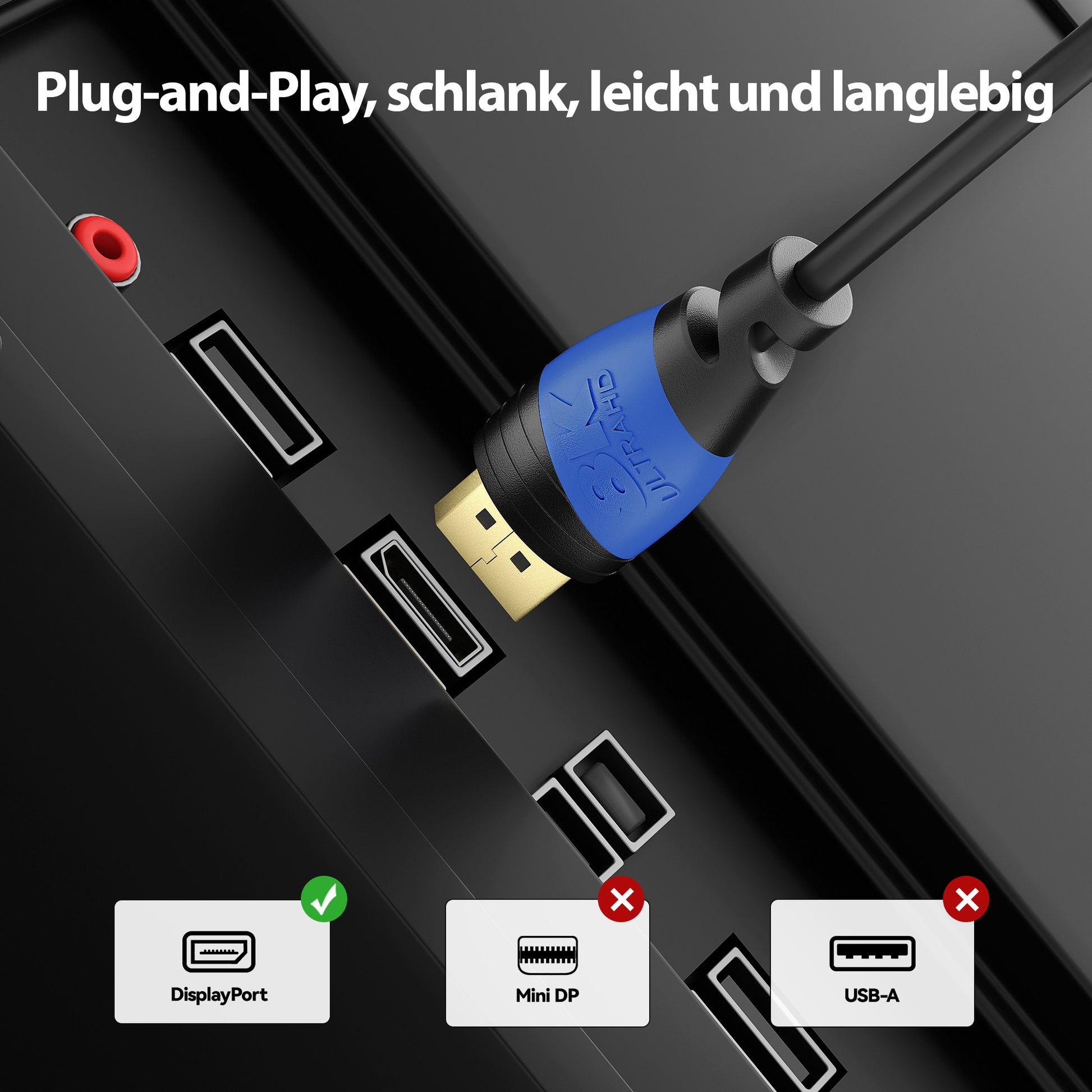Displayport Kabel 1.4 Plug Schwarz/Blau - Variation
