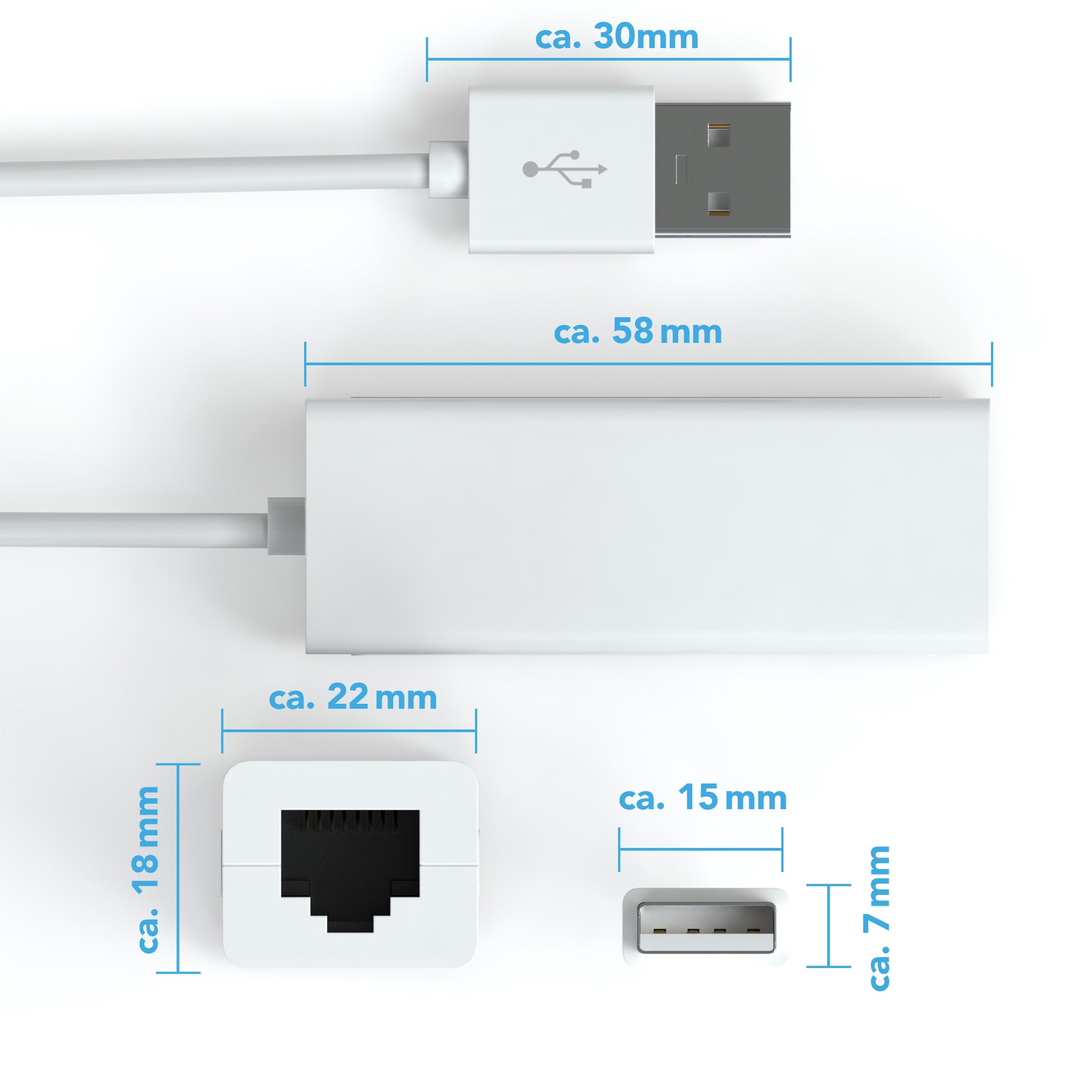 RJ45 Buchse auf USB 2.0 Stecker